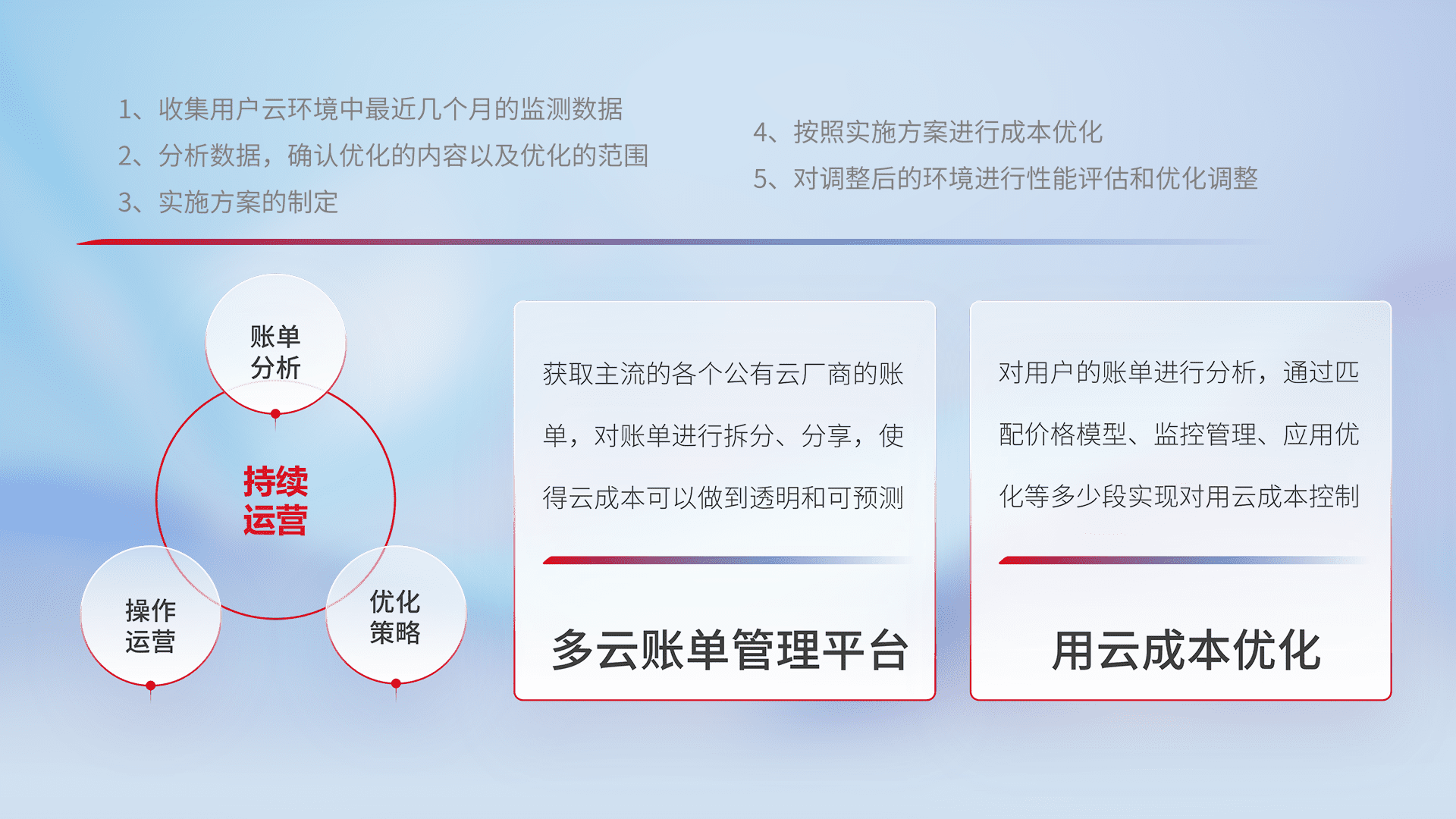 运用智能化工具分析云资源,,,提供日常费用可视化工具,,自动账单拆分,,成本优化云上费用,,,,降本增效。。